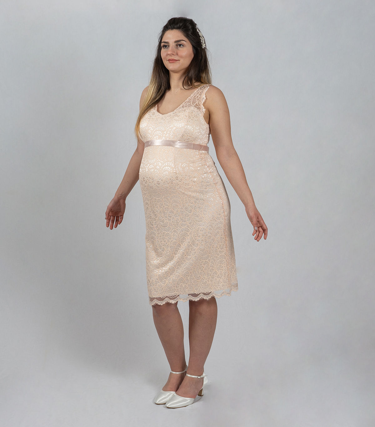 Der Tüll Rock mit Glitzergürtel betont Ihren Babybauch auf besonders schöne Weise. Die Schleppe vervollständigt das Bild einer echten Märchenbraut. Genießen Sie Ihren Auftritt!
